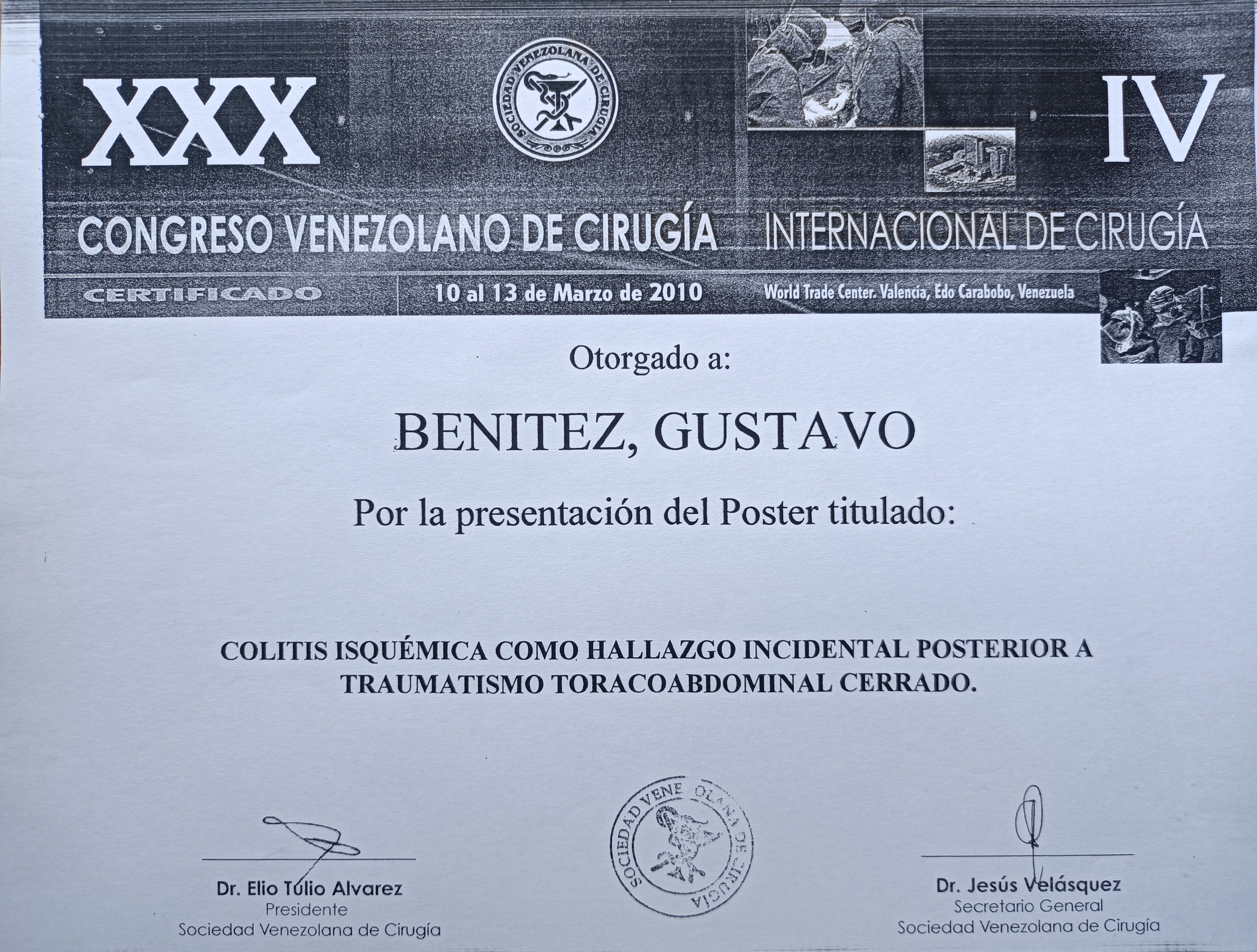 | Series/Report no.: | XXX Congreso Venezolano de Cirugía. IV Congreso Internacional de Cirugía;10 al 16/03/2010 |