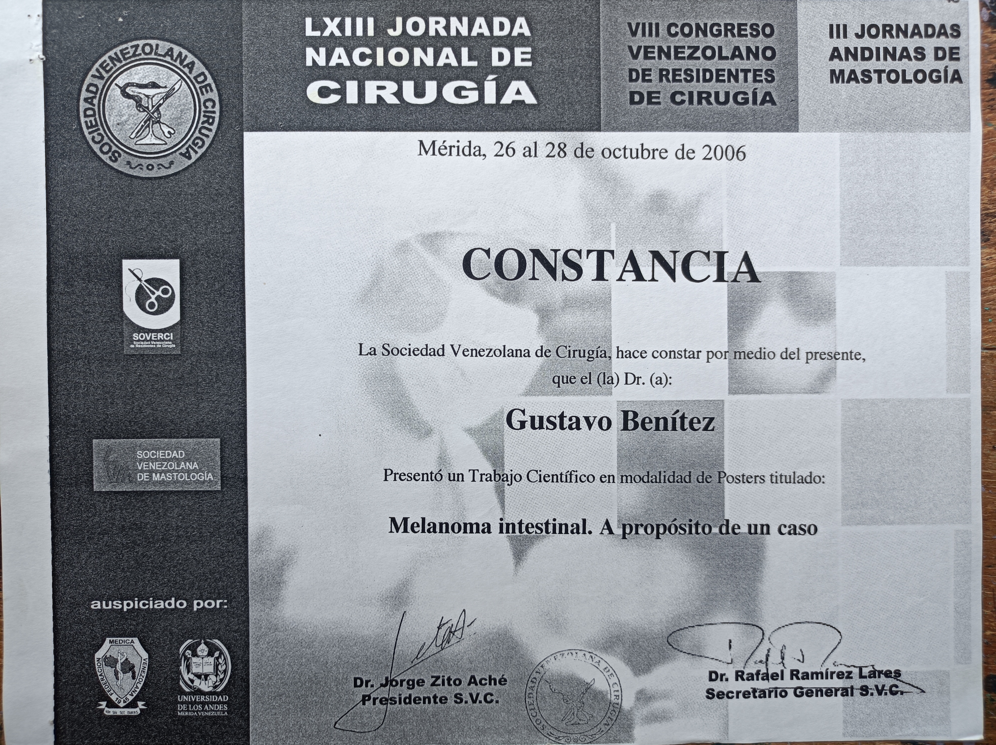 | Series/Report no.: | LXIII Jornada Nacional de Cirugía. VIII Congreso Venezolano de Residentes de Cirugía. III Jornadas Andinas de Mastología.;26 al 28/10/2006 |
