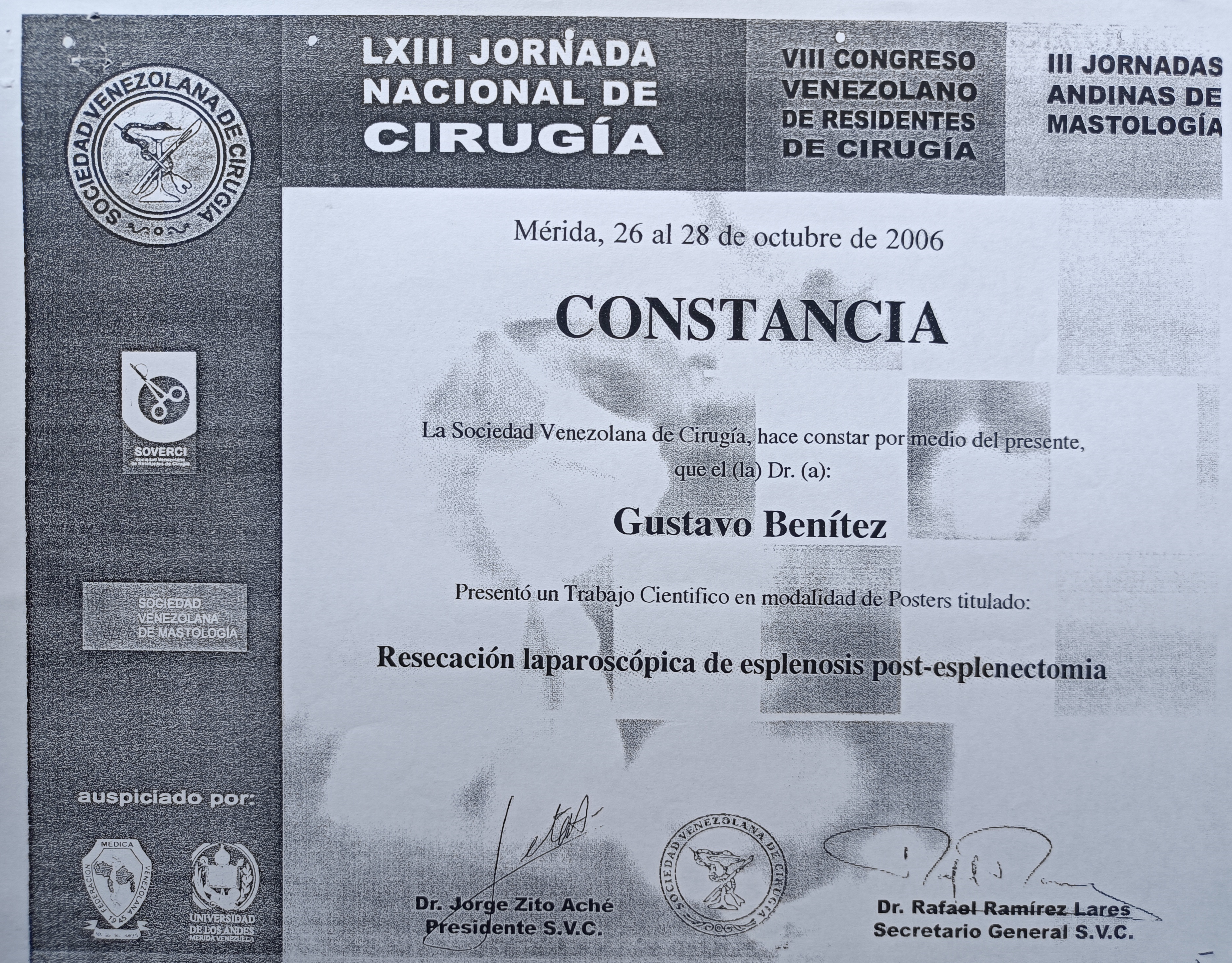 | Series/Report no.: | LXIII Jornada Nacional de Cirugía. VIII Congreso Venezolano de Residentes de Cirugía. III Jornadas Andinas de Mastología.;26 al 28/10/2006 |