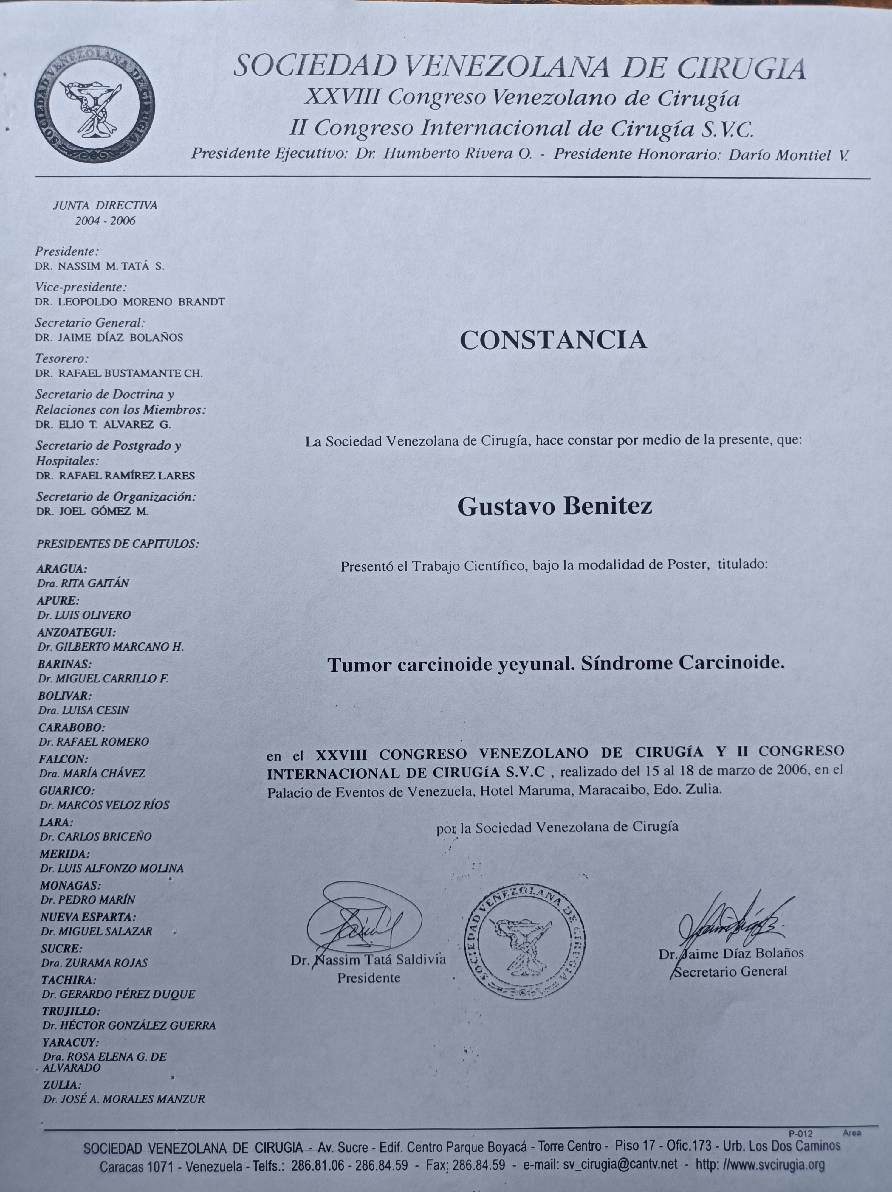 | Series/Report no.: | XXVIII Congreso Venezolano de Cirugía y II Congreso Internacional de Cirugía S.V.C.;15 al 18/03/2006 |