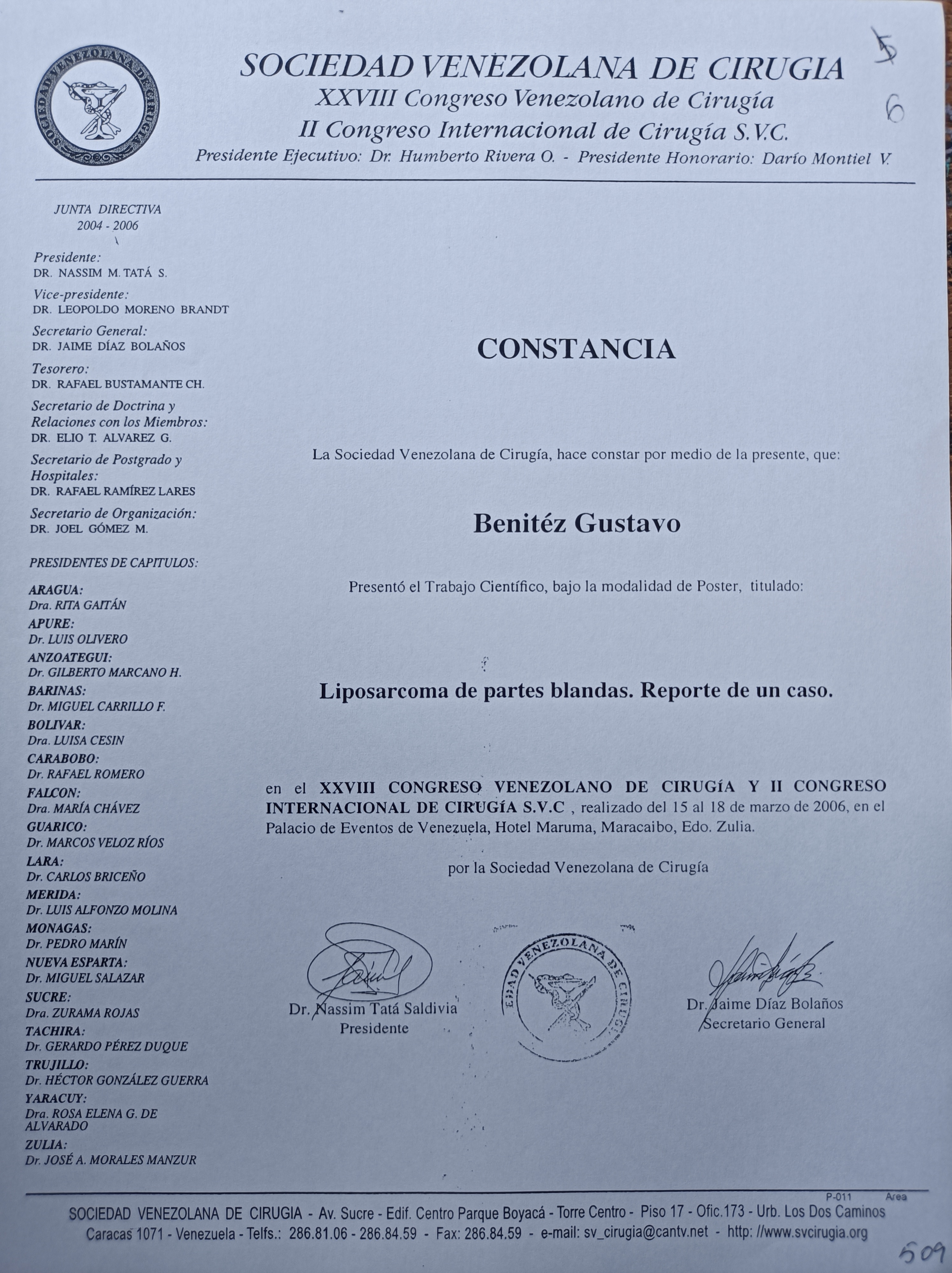 | Series/Report no.: | XXVIII Congreso Venezolano de Cirugía y II Congreso Internacional de Cirugía S.V.C.;15 al 18/03/2006 |