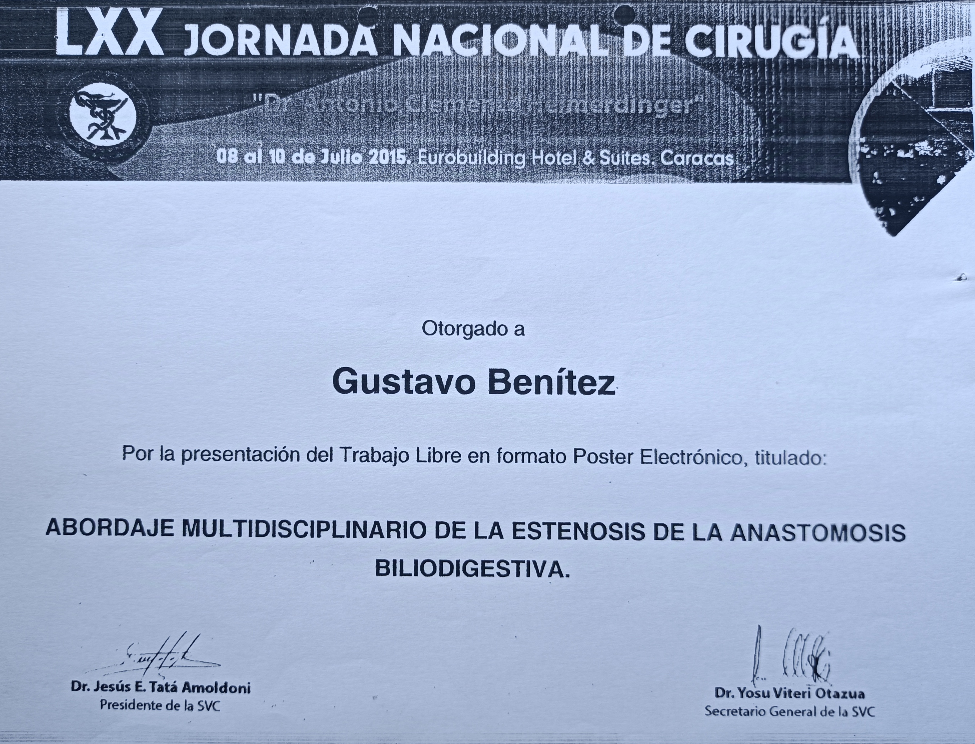 | Series/Report no.: | XXIX Congreso Venezolano y III Internacional de Cirugía “Mitos y realidades de las nuevas tecnologías”;11 al 15/03/2008 |