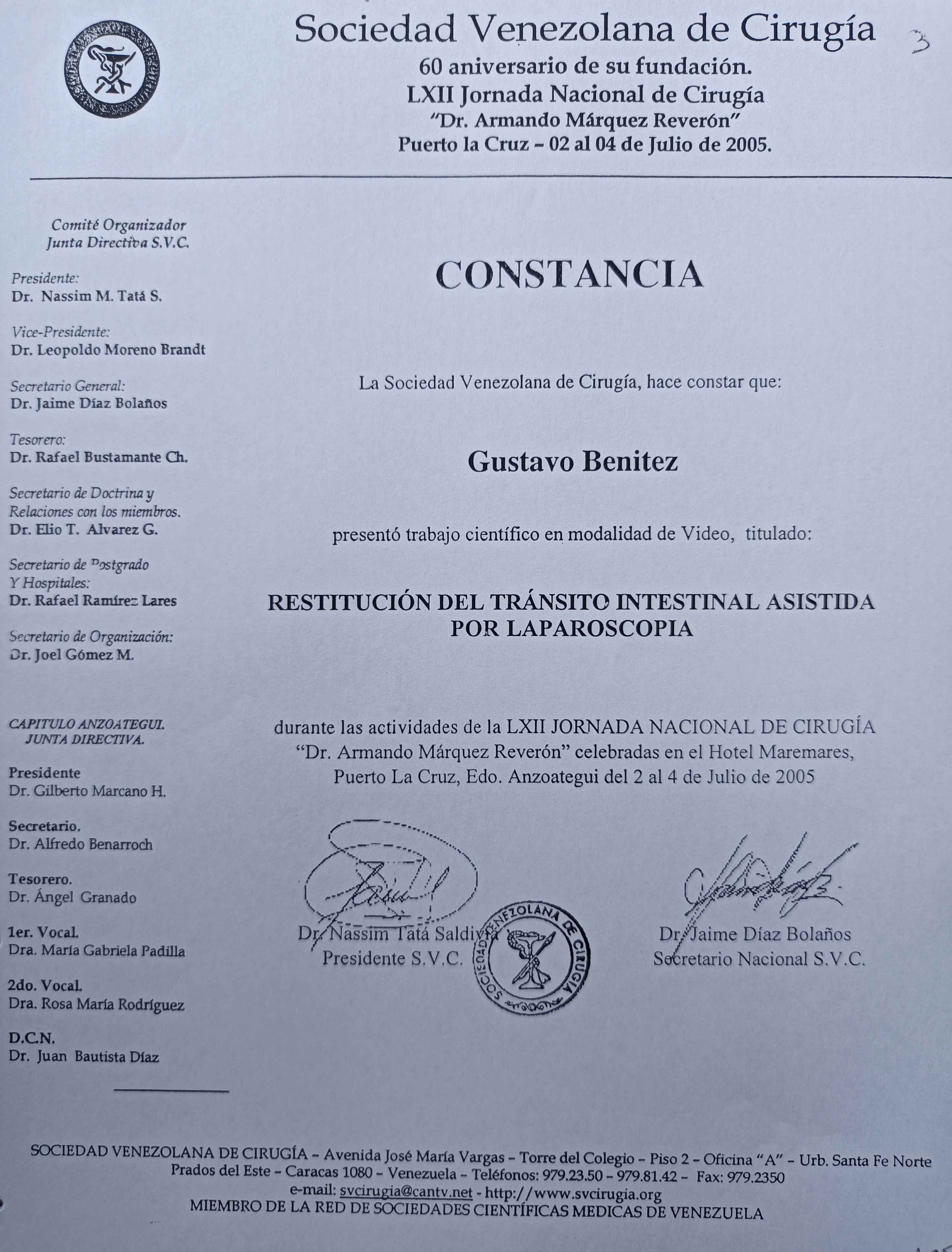 | Series/Report no.: | LXII Jornada Nacional de Cirugía “Dr. Armando Márquez Reverón”;02 al 04/07/2005 |