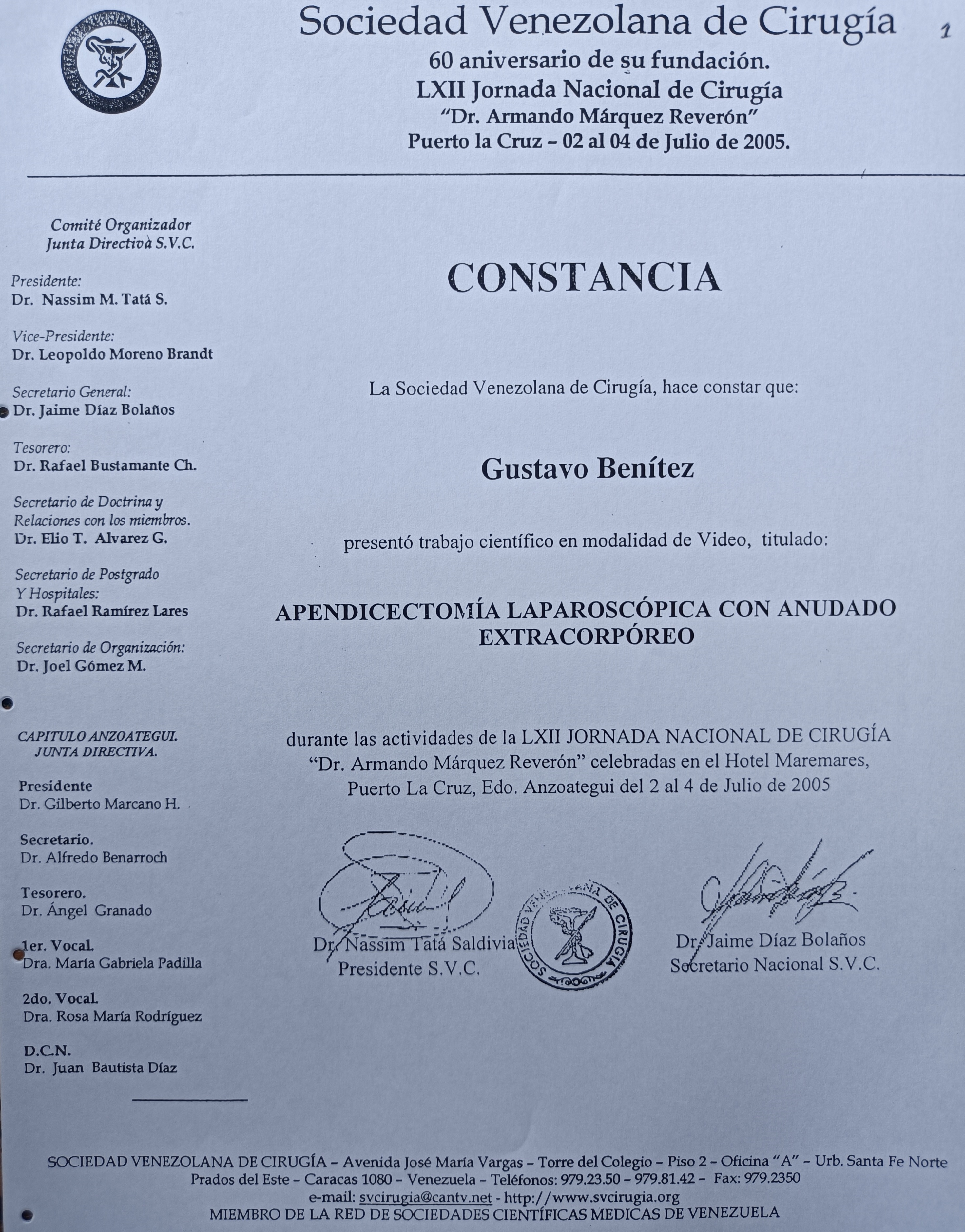 | Series/Report no.: | LXII Jornada Nacional de Cirugía “Dr. Armando Márquez Reverón”;02 al 04/07/2005 |