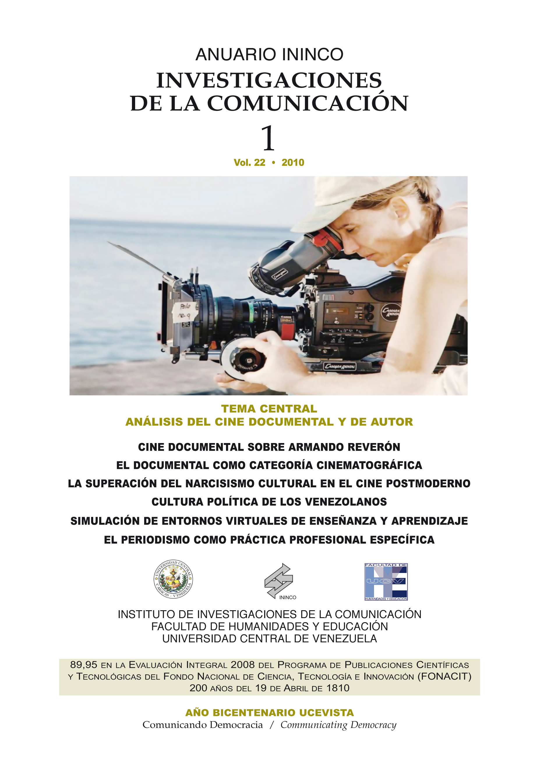 Cine Documental, Cine de Autor, Cine Postmoderno, Narcisismo Cultural, Cultura Política, Entornos virtuales, Simulación, Enseñanza y Aprendizaje, Armando Reverón, ININCO, UCV, FHE, Periodismo,
