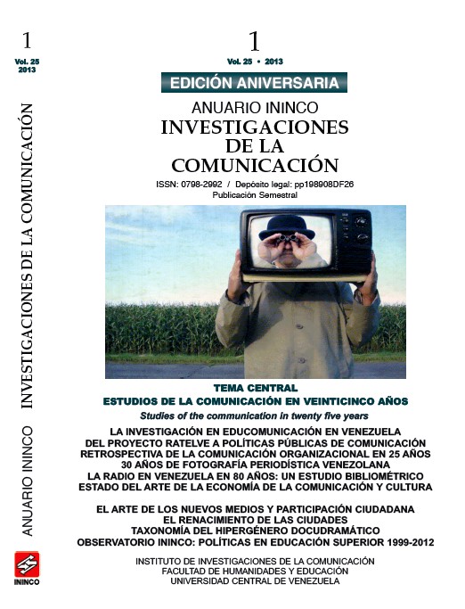 Anuario ININCO / Investigaciones de la Comunicación VOL25 N°1 junio 2013 Edición Aniversaria Texto Completo para colección