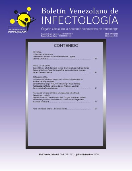 En esta oportunidad, el Boletín Venezolano de Infectología comparte el trabajo de los autores sobre temas importantes y actuales, algunos son producto de las XXIII Jornadas Nacionales de Infectología 2022 y del XV Congreso Venezolano de Infectología "Dr. Rafael Napoleón Guevara Palermo" 2023, realizados previamente por la Sociedad Venezolana de Infectología y la Comisión Científica respectiva.