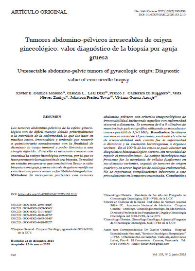 Tumores abdomino-pélvicos irresecables de origen ginecológico: valor diagnóstico de la biopsia por aguja gruesa