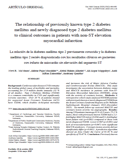 La relación de la diabetes mellitus tipo 2 previamente conocida y la diabetes mellitus tipo 2 recién diagnosticada con los resultados clínicos en pacientes con infarto de miocardio sin elevación del segmento ST
