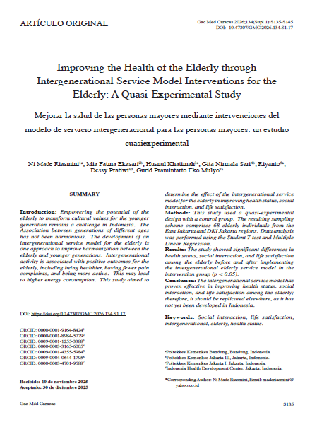 Social interaction, life satisfaction, intergenerational, elderly, health statusResumen