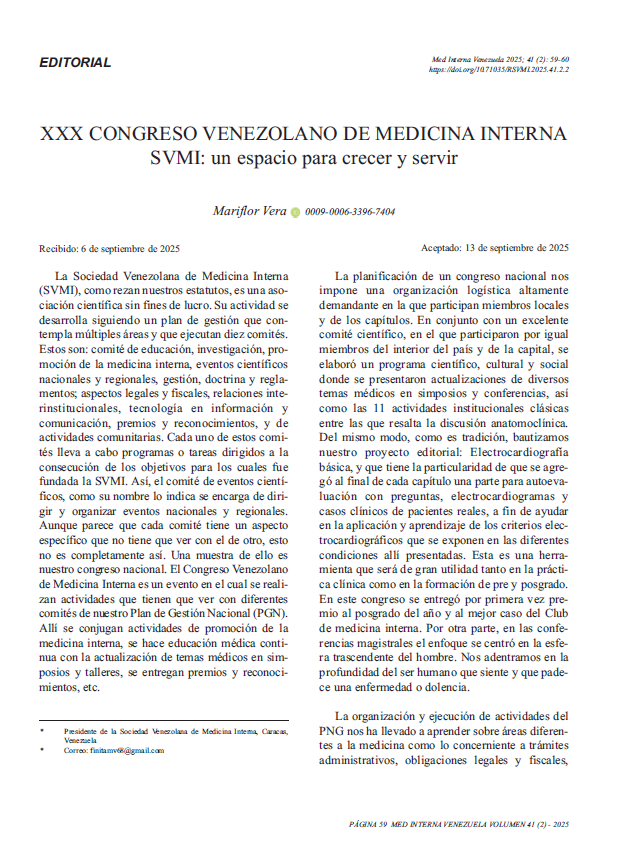 XXX CONGRESO VENEZOLANO DE MEDICINA INTERNA SVMI: un espacio para crecer y servir