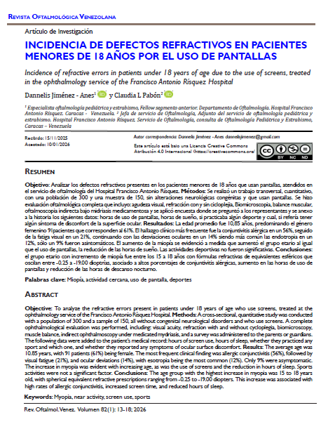La Revista Oftalmológica Venezolana (ROV) es una publicación científica, trimestral y arbitrada, que constituye el órgano divulgativo de la Sociedad Venezolana de Oftalmología (SVO).